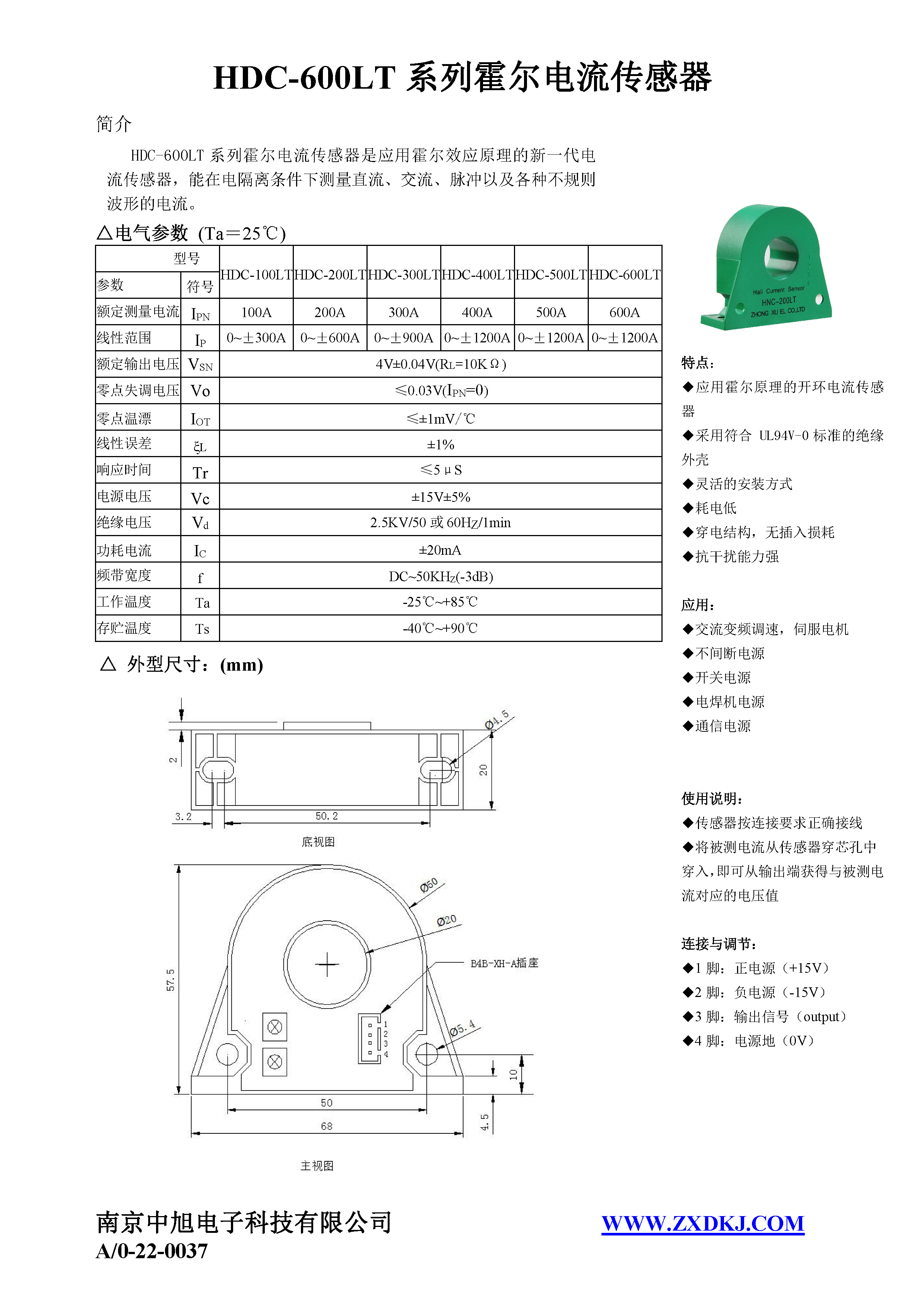 HDC-600LT series Hall current sensor is a new generation of current sensor using the principle of Hall effect. It can measure currents of DC, AC, pulse and various irregular waveform under electrical isolation.