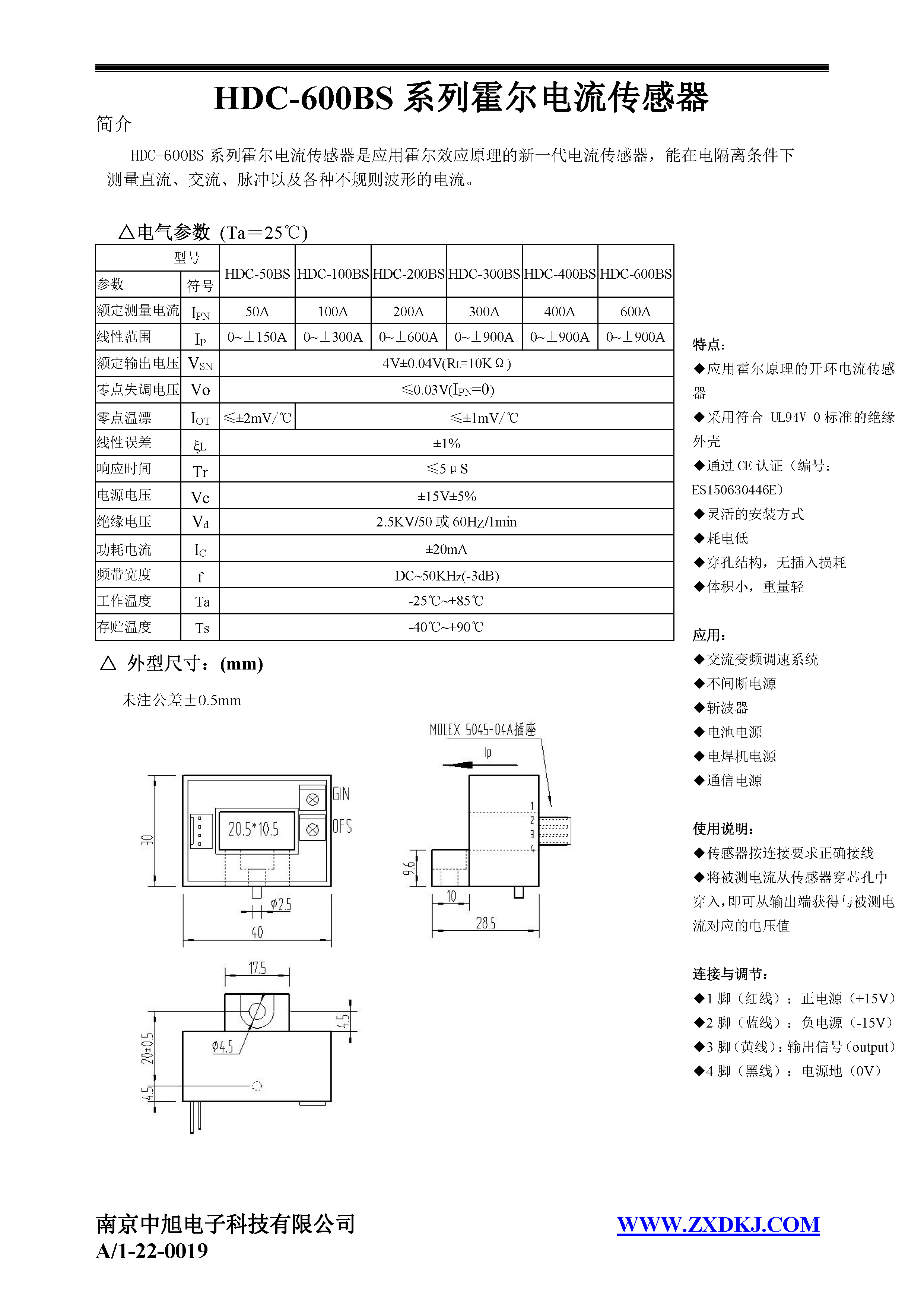 HDC-600BS series Hall current sensor is a new generation of current sensor using the principle of Hall effect. It can measure currents of DC, AC, pulse and various irregular waveform under electrical isolation.